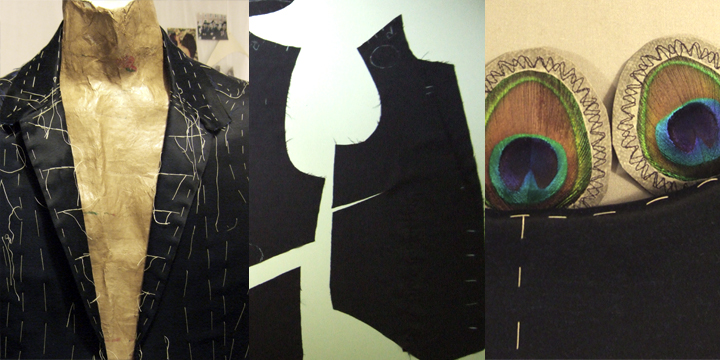 Basting, muslin, peacock feathers for the